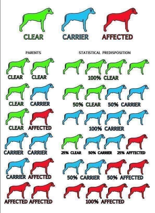 Dlaczego jest to tak ważne dla hodowców i kupujących? Jeśli hodowca wie, że jego pies jest nosicielem (carrier), może świadomie unikać parowania go z innym nosicielem, aby zminimalizować ryzyko urodzenia szczeniąt „affected”.